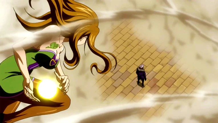 En la isla Tenrou al inicio del ataque de Grimoire Heart es vista convirtiendo en piedra a infinidad de soldados rasos del gremio enemigo. Sin embargo resulta peculiar el como pudo petrificarlos si estaban enmascarados y su poder requiere del contacto visual.