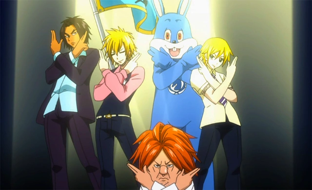 Como parte del Programa de Intercambio de Magos, el Equipo Natsu visita a Blue Pegasus. Después de vestirlos con la ropa de escolta, los Trimens felicitan a Ichiya por su gusto. Después de que Natsu comienza una pelea con un cliente, Hibiki queda atrapado en el aliento de fuego de Kemokemo , lo que hace que Ichiya les pida que se vayan.