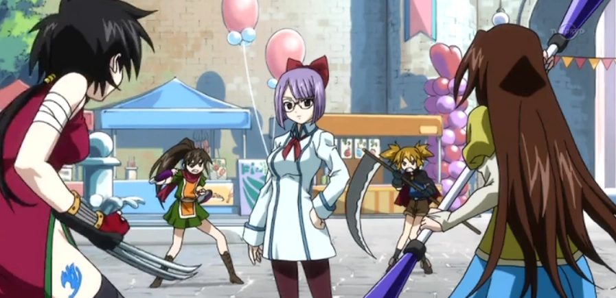 En el arco del festival, tiene el pelo corto por lo que otras chicas del gremio están celosas, pensando que ella podría participar en el concurso Miss Fairy Tail.
