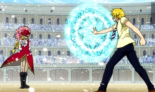- Fila de Expertos Espadachines Antiguos: Gracias a la magia que memorizó en uno de los libros de la biblioteca de Crocus, Rufus es capaz de combinar Magia Antigua con la magia de Ice Make de Gray. Rufus crea una horda de soldados de hielo que son capaces de neutralizar el ataque del mago de Fairy Tail y además ocasionarle daños.