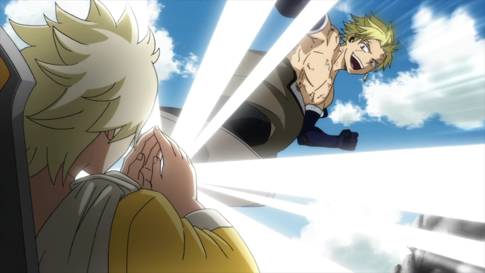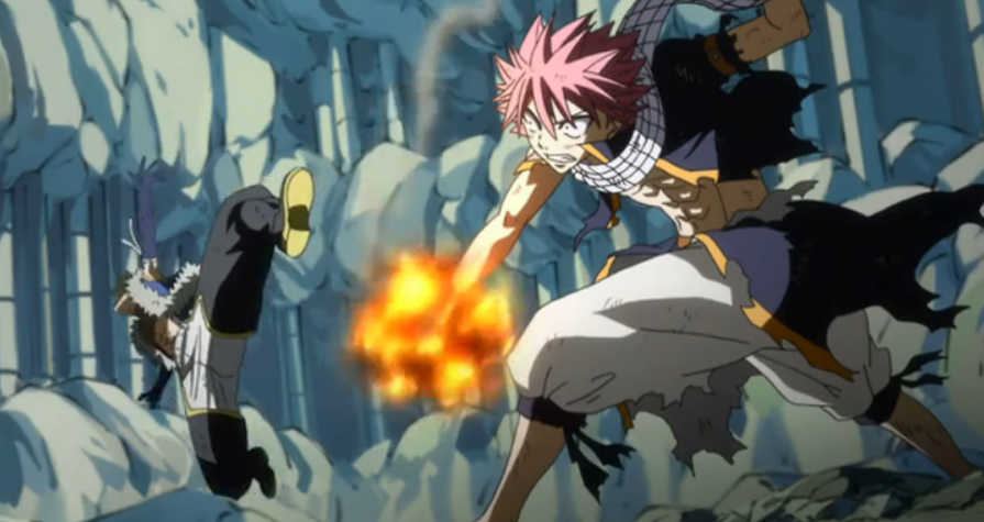 Natsu golpeando a Sting
