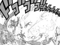 Natsu usa il Ruggito del Drago di Fuoco.