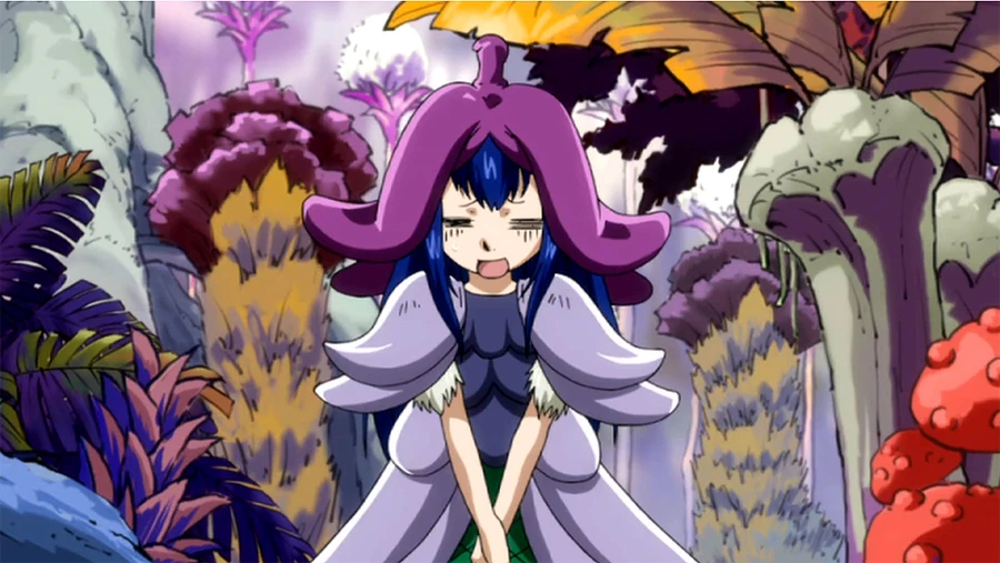 Confuso, il team decide di continuare l'esplorazione. Calpestano accidentalmente un fungo rimbalzante che li fa finire in un magazzino dove riescono a trovare dei vestiti decenti da usare come travestimenti. Quando tutti si sono cambiati d'abito, Natsu guarda fuori dalla finestra e vede il simbolo della gilda di Fairy Tail appeso ad un bizzarro edificio a forma di albero. Entrano nell'edificio e trovano Juvia in un abito rivelatore; Grey sotto tonnellate di strati di indumenti che è innamorato di Juvia; Jet e Droy fanno il prepotente con Elfman; un Nab maniaco del lavoro; una Cana signorile che non beve alcolici; Alzack e Visca totalmente innamorati l'uno dell'altro; e Lucy vestita in abiti gotici, che riesce a trovare la squadra nascosta sotto un tavolo, attirando su di loro l'attenzione di tutta la gilda.