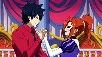 Natsu spinge Elfman lontano dalla donna e Gray balla con lei. Gray chiede alla donna che tipo di magia usa, ma la donna gli dice che dovrebbe dirle quale tipo di magia usa per primo, cosa che Gray si rifiuta di fare. La donna mostra quindi la sua magia del ghiaccio a Gray, e i due iniziano a combattere finché Elsa non li ferma. Aceto poi esce con suo padre e chiede a Elsa di ballare con lei, un'offerta che accetta.