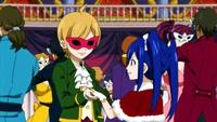 Nel frattempo, un ragazzino chiede a Wendy di ballare con lui, e Wendy accetta, e Carla afferma che è quasi l'ora dell'evento principale. Quando l'orologio suona, Aceto spiega a Elsa che l'orologio gigante si apre solo una volta ogni sette anni e rilascia un dispositivo che mostra l'anello, segnalando l'evento noto come l'inaugurazione dell'anello. L'orologio quindi si apre e il Conte afferma che chi ottiene l'anello ha il diritto di fare la proposta a sua figlia. Mentre guardano dall'esterno, Warren e gli Exceeds vedono qualcosa di strano nel Lacrima, che li spinge a indagare su di esso. Poi trovano un ragazzo legato che afferma che Velveno lo ha afferrato proprio prima che si unisse alla palla, e Warren poi dice a Wendy che il ragazzo con lei è Velveno, con suo grande shock.