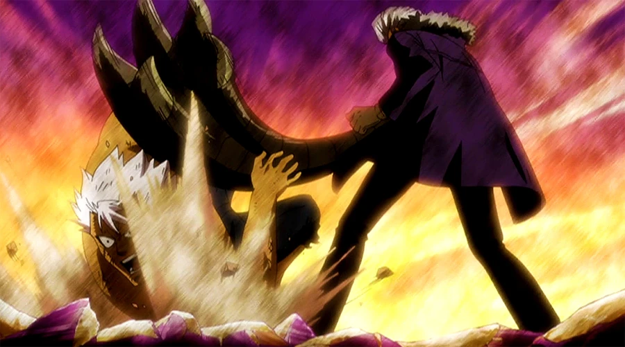 Mentre Elfman si alza lentamente, si infuria per l'obiettivo di Grimoire Heart di cancellare il 90% della popolazione mondiale che non può usare la magia, dicendo che i maghi che forniscono supporto agli umani e viceversa sono ciò che consente al mondo di esistere. Rustyrose discute con Elfman e prende in giro le sue convinzioni, dicendo che non capisce affatto i membri di Fairy Tail. A un certo punto, ride persino delle convinzioni di Elfman, facendolo infuriare ancora di più. Quindi dice alla coppia che non hanno idea del vero orrore di Zeref e che una volta che ne saranno testimoni, non potranno fare altro che rannicchiarsi per la paura. Elfman quindi lo attacca, dicendo che Fairy Tail sconfiggerà qualsiasi tipo di oscurità. Rustyrose risponde che, nonostante il suo nome, la gente di Fairy Tail non è la meno elegante. Quindi trasforma di nuovo il suo braccio destro nel suo artiglio e colpisce l'Elfman che lo sta caricando. Mentre Elfman viene lanciato all'indietro, Rustyrose colpisce di nuovo con l'artiglio, ma questa volta, Elfman lo cattura con il braccio sinistro, fermando anche i movimenti di Rustyrose nel processo.