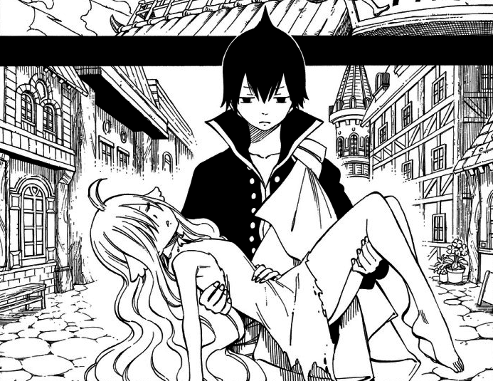 Zeref carregando Mavis para a Guilda Fairy Tail