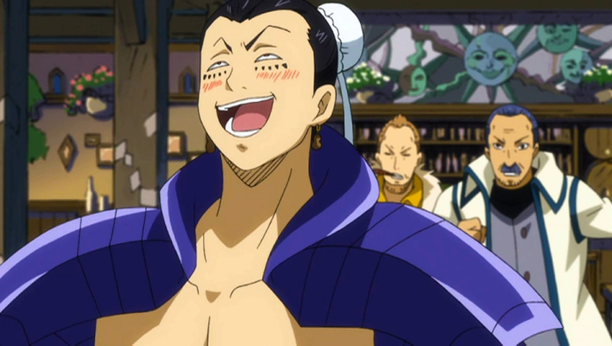 In spite of this, Bacchus appears to have a sense of honor, acknowledging Elfman as a "man" as he lost to him during their battle, admitting defeat,[8] and being willing to cheerfully honor the bet he made with him despite it making a mockery of his guild's team in X791's Grand Magic Games, claiming it to be a "promise between men".[9] He's also very exuberant, and, much like many of his fellow guild members, has the habit to refer to his or others' "spirit" as "wild".[10] Bacchus, much like Elfman, has his own set of beliefs as to what defines a man.