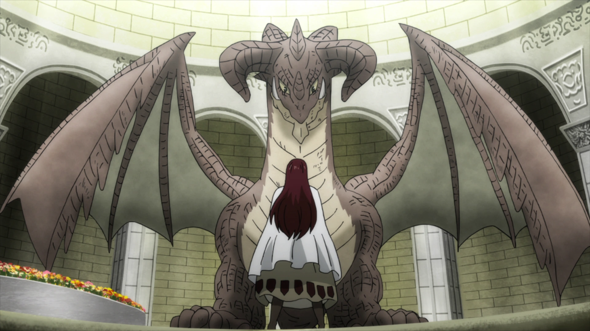 Later, he returned to the Kingdom of Dragnof from his patrolling of the West, noting to the guards that it had becoming increasingly violent while asking for Irene's location. He found her in the courtyard and told her that the western Dragons will be invading Ishgar soon, and adamantly expressed his desire to protect all humans.[2] After some time of taking part in the war, a wounded Belserion noted that they wouldn't win, but that his desire to protect humans had not wavered. The Dragon and Irene argued about the repayment of his debt, but when Irene brought up the possibility of fighting in the war, Belserion found it ludicrous. His disapproval of the idea turned into one of utter shock when he found out that Irene's plan was to have him bestow his own Magic onto her to turn her into a Dragon Slayer,[4] which he ultimately did.[5] By the time of the war's climax, Belserion was killed, like many other Dragons, by Acnologia.[6] In his memory and in a quest for vengeance, Belserion's name was later taken on by Irene as her surname.[5]