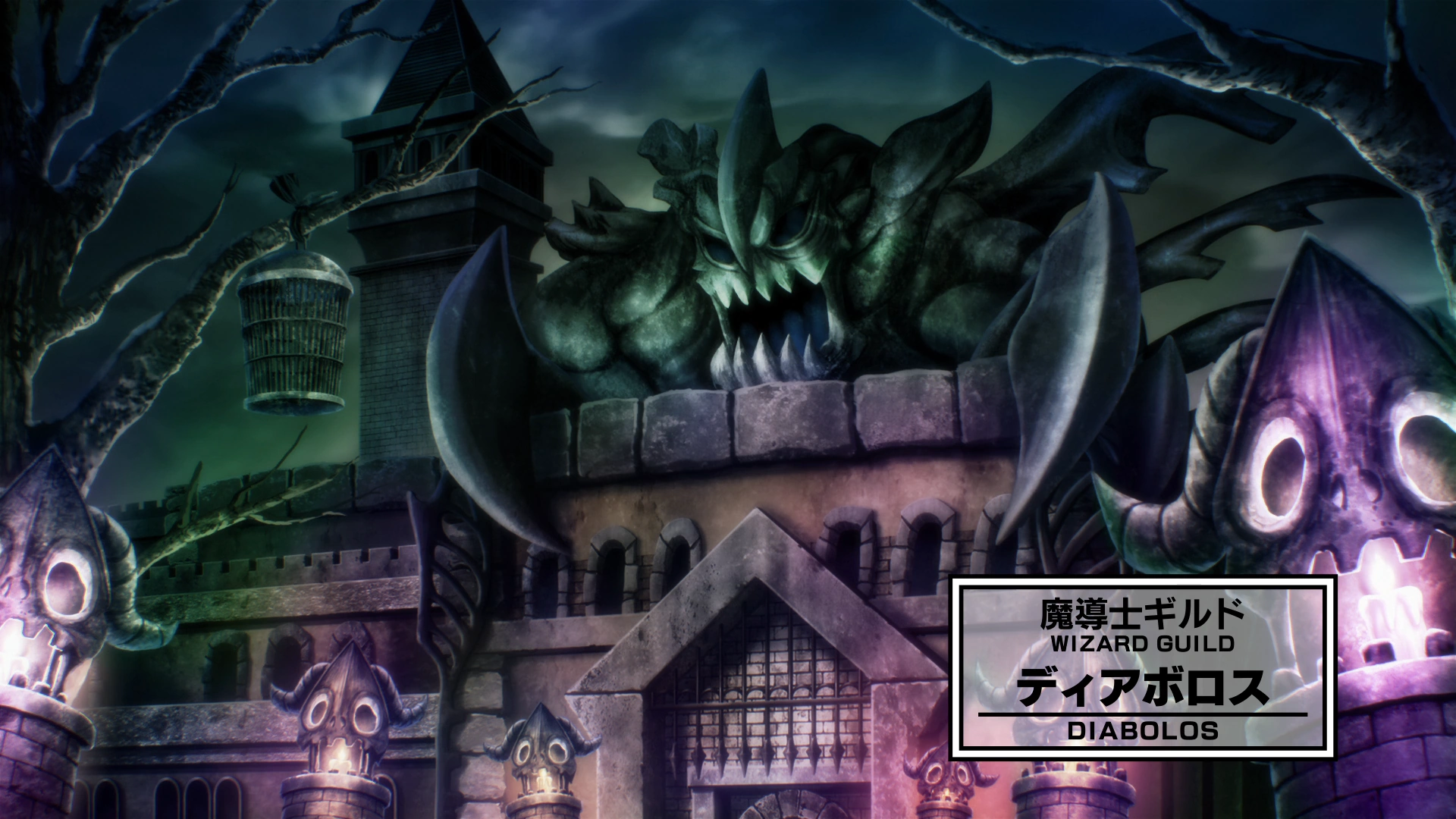 Diabolos' exact location is unknown. However, its guild building has been shown. The building itself appears to be worn down with dead trees, and skulls with candles inside them can be found near its entrance. Topping the whole structure is a massive statue of an insect like monster with its head facing the entrance while one of its wing like features has been broken.[11]