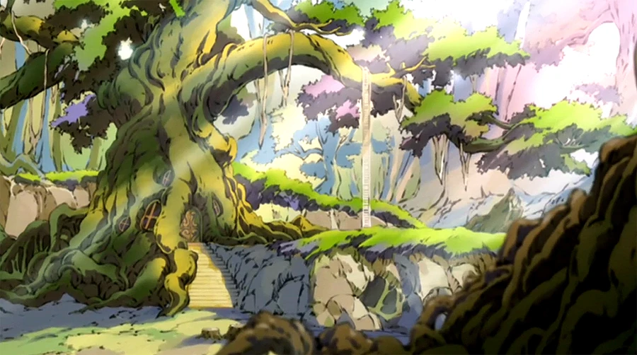 East Forest is a large forest, with a large variety of both plants and animals. The climate appears to be warm, with a good amount of moisture, which can be inferred by the lush vegetation as well as the fairly frequent and dense mist.[2]
