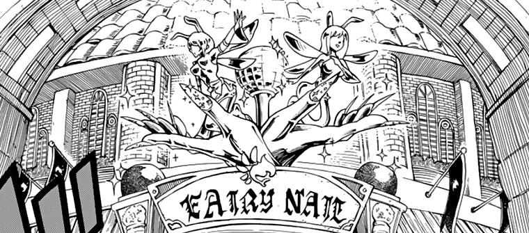 The Fairy Nail guild has a wide range of celebrity members such as singers, models, actors and more.[1] By sheer coincidence, the names of the guild and many of its members are nearly identical to those of Fairy Tail, a Mage guild on Ishgar; most of said members also share physical appearances, but have different personalities, similar to the Fairy Tail guild in Edolas.[2][3]
