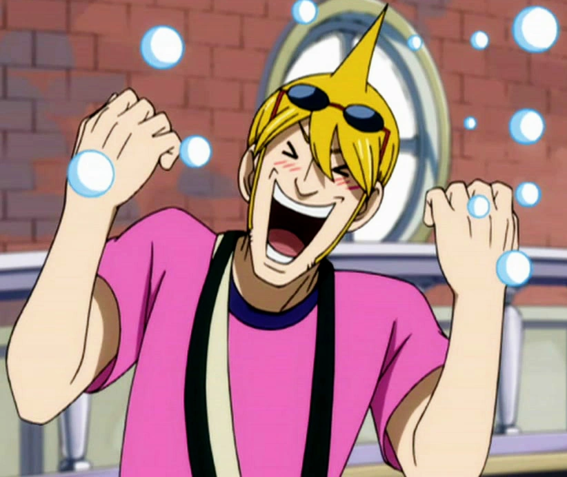 Jason is a relatively short young man with blond hair that sticks up in the middle. He wears a pink t-shirt, blue jeans, brown shoes and black sunglasses. He carries a white satchel with him and a black camera as well. In the year of X791, he wears a t-shirt with the name "Fairy Tail" written on it.