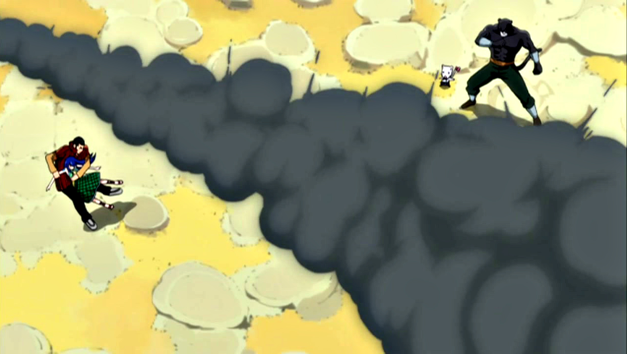 Mest and Wendy end up stumbling on the battle path that contained Gray and Loke. The battle ends with Mest being knocked out easily much to their surprise. Mest is then seen when he awakens to find the battle already over and tries to comfort Wendy on the sudden loss of the battle.[45]
