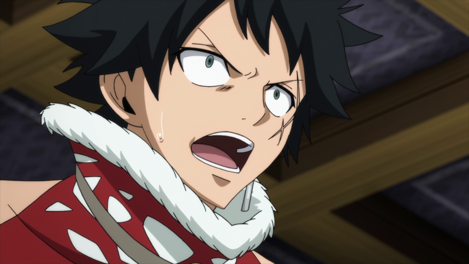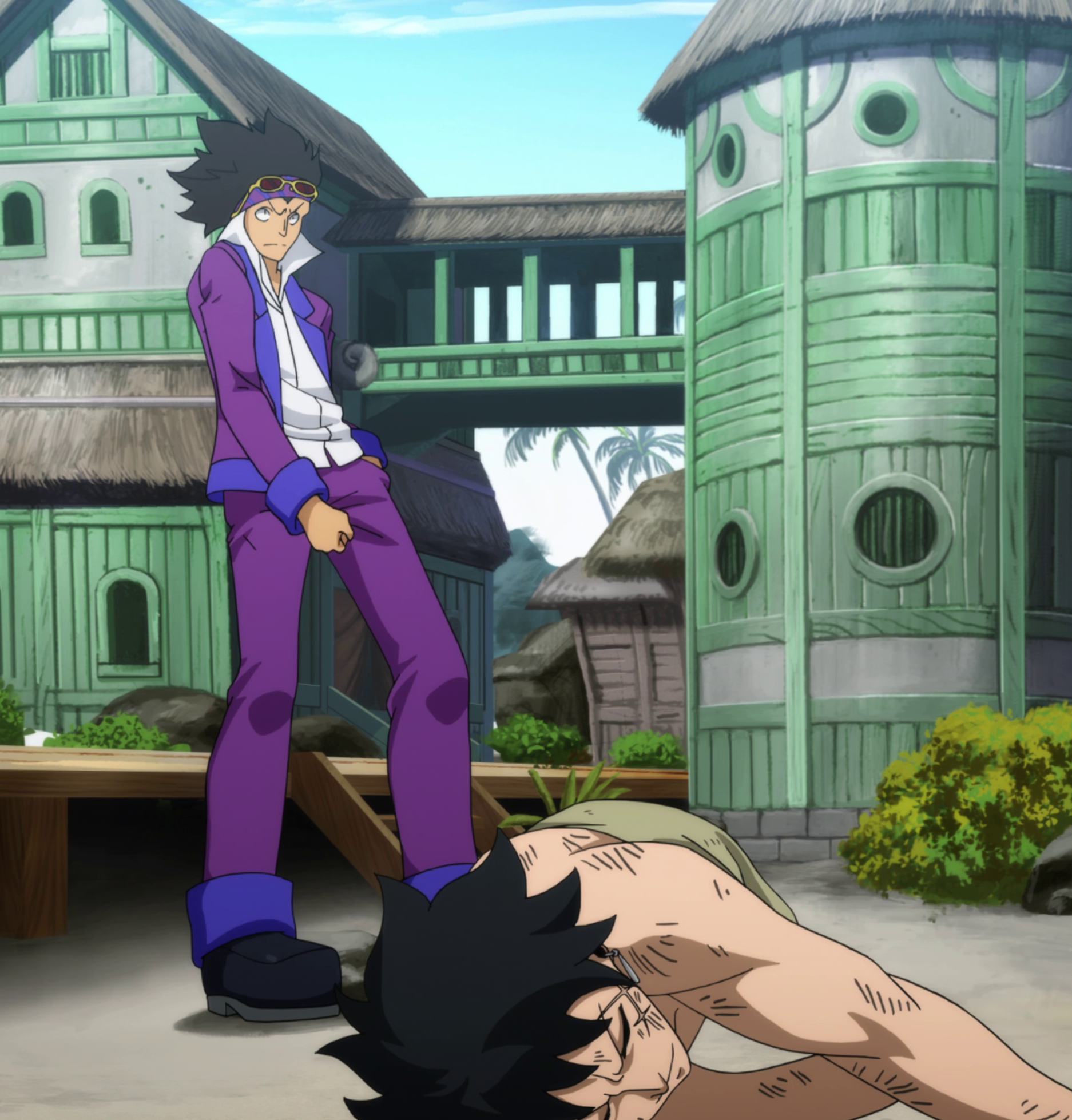 When Natsu, Lucy, and Wendy try to convince him to stall the council from destroying the island while they defeat Grimoire Heart, he reluctantly agrees.[56] He is then shocked when the Great Tenrou Tree is destroyed by Azuma.[57]