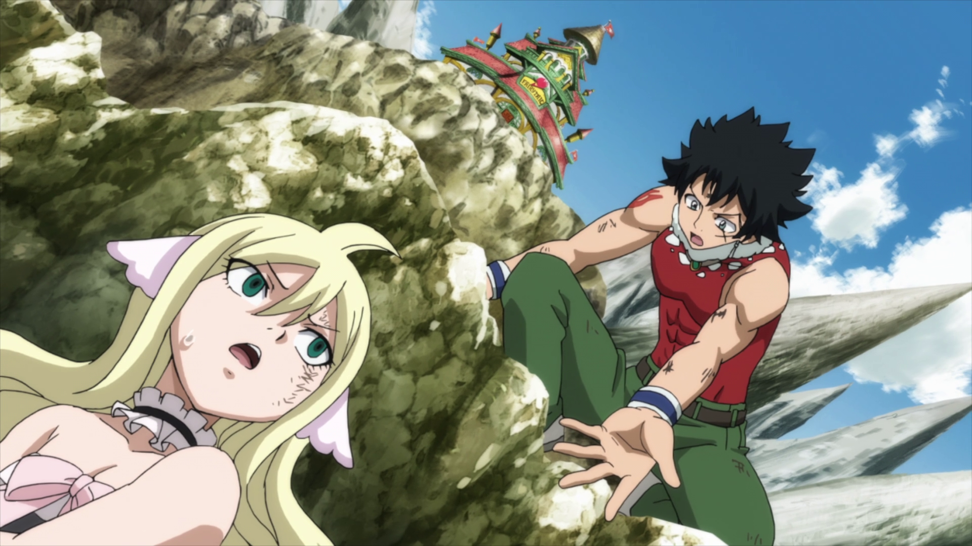 On the third day of Grand Magic Games, Doranbolt is invited by Lahar to watch said event, knowing that he wants to see the returning members of Fairy Tail after their seven years of absence.[64] During Pandemonium, the day's event, Doranbolt is stunned by Erza Scarlet declaring that her challenge right would be one hundred[65] and tears quickly cascade down his face when Erza emerges victorious.[24]