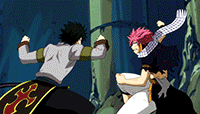 Out of his guild mates, Natsu feels most antagonistic towards Gray, as the two constantly fight and bicker every chance they have since childhood. The two were even initially reluctant on being on the same team and usually acted friendly towards each other to avoid Erza’s scolding.[52] Despite all this, they do care for each other as much as anyone in the guild, Natsu has carryed Gray when he’s down, even preventing Gray from sacrificing himself numerous times, even being saddened to tears.[53] The two are shown at times to at least get along in friendly competitions.[54]