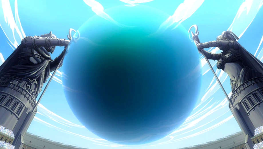 For the event of the fourth day, each team has to select a person to participate. The event will occur in a large, aquatic dome-like sphere inside the arena. The rules for the event are explained: a participant automatically loses when they leave the sphere and the last person remaining will be the winner, unless there are still two people left during which a five-minute time limit will be given so that both can compete for victory. When this exception occurs, the loser of the match will be awarded the least points.[1] The new guest judge of the fourth day is introduced: Rabian. Each participant in the event dresses in swimwear and proceeds to enter the underwater sphere in the arena.[2]
