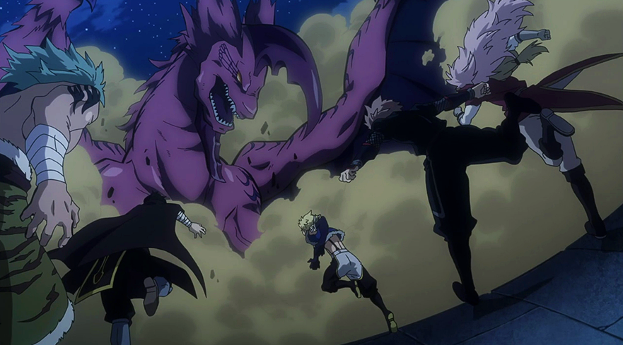 As Sting manages to fight the Dragon attacking them, pushing it back with his Magic, Orga smiles at Sting's words about having the courage to protect his comrades, battling one of the small Draconian creatures hatched by Motherglare as such a thing occurs.[40]