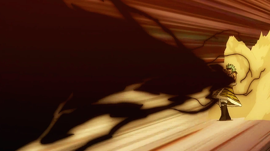 However, his enthusiasm soon fades when the debris clears to reveal Natsu standing victorious over his two teammates. As the crowd cheers and Fairy Tail celebrates, Orga expresses his disbelief to Rufus, who merely replies that the battle was interesting. Hearing this, Orga chuckles, commenting that such a result will attract large crowds for quite some time.[26]