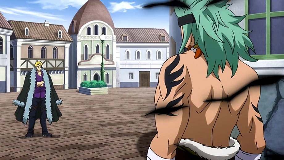 When Natsu, Lucy, and Happy arrive at Sabertooth, Orga tells them that all of the jobs that used to go to Fairy Tail are now coming to them, and Rufus remarks that it is making the guild a great deal of money.[46]
