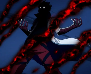 When Erik uses his Dragon Slayer abilities, his arms become clawed and scaly, which first showcased the great corrosive power of his poison, disintegrating the sleeves of his coat merely upon activation.[5]