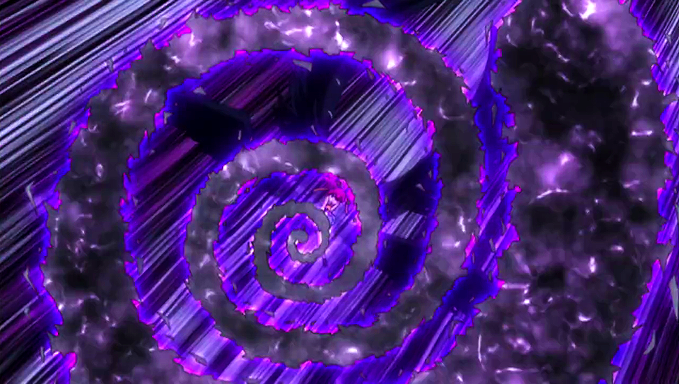 Sky God Slayer Magic (天空の滅神魔法 Tenkū no Metsujin Mahō): A rare form of Ancient Spell somewhat akin to Wind Magic, which allows Sherria to generate and manipulate air in the form of spiraling black currents, which can be employed to assault foes with great effect, sending them flying away from the small God Slayer with great blunt force.[65] This form of Magic also grants the girl the ability to eat the oxygen present in the air around her to replenish her strength reserves.[66] Lyon Vastia described Sky God Slayer Magic as "the sky's ultimate Magic",[67] superior even to Sky Dragon Slayer Magic: where the latter is thought to kill Dragons the former, if correctly honed, is supposedly powerful enough to take down a god.[68] This form of Magic can also be employed underwater without seeming disadvantages, as shown during the Grand Magic Games' Naval Battle event.[69] After gaining access to her Third Origin, Sherria has shown the potential mastery of her Magic from the future as she was able to take down a god,[70] however as a result of this she temporarily lost the ability to use magic but eventually regained it in small amounts, currently being able to only make a small altercation in the air around her hands.[71]