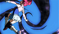 Hand-to-Hand Combatant: Sherria could combine unarmed attacks with her Sky God Slayer Magic in order to make up for her reduced size, making the blows she landed stronger and increased their range with the black currents characteristic to her Magic; a fighting style not unlike Wendy Marvell's, whom Sherria engaged in a melee confrontation near the end of their battle in the Grand Magic Games.[87]