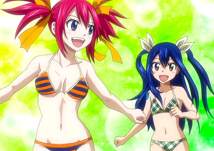 On the night of the third day of the Grand Magic Games, Sherria and some of her guildmates visit Ryuzetsu Land, a swim park attraction in Crocus. Finding Wendy there with her guild as well, Sherria quickly inquires if the Sky Dragon Slayer is okay after their battle earlier that day. Hearing that she is, Sherria asks Wendy if she would like to play, and together the two skip off towards the pool to splash about. As they play, the two are approached by Panther Lily, Carla and Happy, who confuse them by being upset over something that apparently happened to them. Unsure, Sherria concludes it must be love. A little while later, Gray and Lyon fight and freeze the pool, with Sherria and Wendy being caught up in the ice. They aren't trapped for long though, as Natsu uses his Magic to blow the park sky high, sending Sherria and Wendy flying in the process.[89]