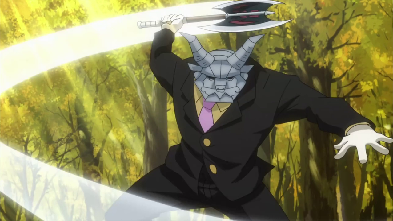 Ignoring Elfman's claim of Taurus being unmanly for fighting whilst reading, Taurus appears behind him and tells the man that his fights lack intellect and smashes his face into the ground with his foot, insulting him even further. Elfman, however, gets up and retaliates; Taurus withdraws his labrys and clashes once more; sweat gets on Taurus' suit, which causes him to break out in a panic. With his weakness now exposed, Elfman repeatedly douses Taurus in his sweat and, when he falls to the ground in a panic, Elfman taps his head with Hisui's banishing key, thereby forcing Taurus' gate closed.[3]
