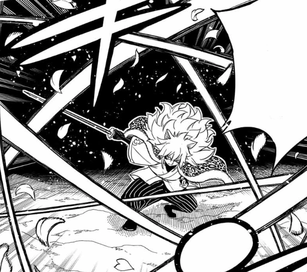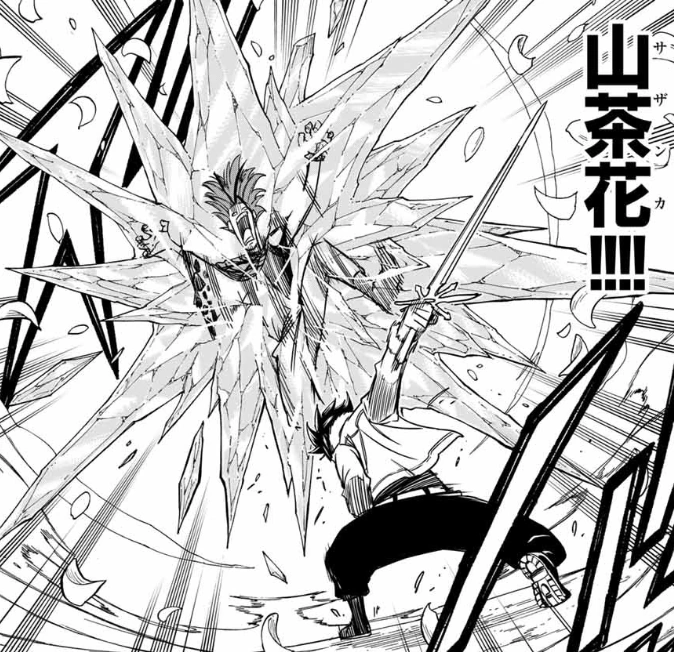 The user creates a humanoid illusion who absorbs the falling snow around them into their sheathed sword before unsheathing it and attacking their target with multiple slashes as the snow takes the form of camellia petals.[1] The user can also create a sheathed sword made of ice and charges their sword with ice and snow before unsheathing their sword and attacking their target as the ice and snow takes the form of camellia petals and fully encasing the target in ice.[2]