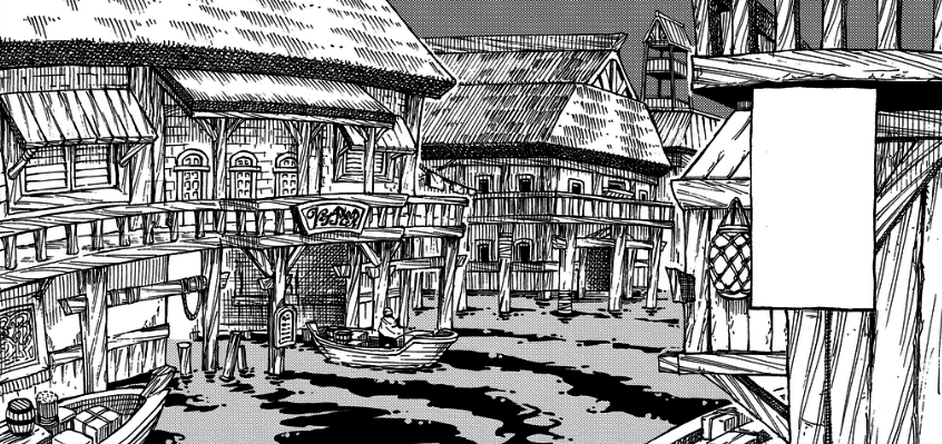 The exterior includes many wooden housing establishments occupying around the waters. Besides the two-story buildings on the exterior, there is a port which allows access to boaters and sailors to be able to park and travel on land.[1]