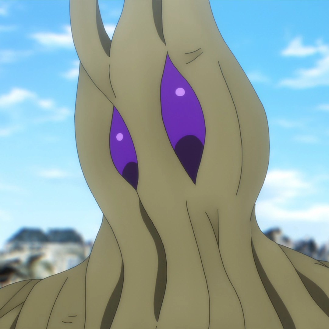 Wolfen appears across Aldoron after the orbs were destroyed and the nutrients absorbed, with the mission to eliminate anyone who was not absorbed. One of his bodies sprouts from the Backside after Natsu deals 1 point of damage. He explains that the Wood Dragon God has 1,000,000 points of stamina and the fire Mage could defeat him if he repeatedly used the same technique. The sprout grows and forms a body, Wolfen introduces himself and states his mission. He grabs Natsu's face and reads his mind. The fire Mage burns his arm off, but the God Seed states that he can read it,[3] the strength of the most powerful person in his mind. Wolfen transforms, explaining how his powers work, and claims that this form will kill him. However, he is shocked that he transformed into a cat and thinks this is a mistake, which Natsu does not believe it is. He tries to get Natsu to think of someone he had a life-or-death struggle with, but the Dragon Slayer still thinks about Happy, distressing Wolfen over what goes on in his mind. Wolfen is defeated shortly after, getting sent away with a punch to his face. After this, more of his bodies sprout from the ground and surround Natsu.[4]